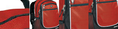 - Front zippered pocket with 2 mesh pockets and key fob