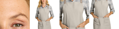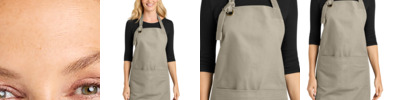 Ideal for food service, hospitality and events, this apron delivers comfort, coverage and a clean look. 9.4-ounce, 100% cotton twill Self-fabric neck strap with antique brass grommet pass through detail Large divided front pocket Dyed-to-match herringbone tape waist ties 13'w across chest x 32'l