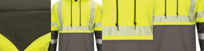 • 360° visibility with front and back 2" segmented heat seal silver reflective striping