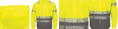 • Color blocked shirt with hi vis upper half for ANSI compliance and grey lower half to conceal dirt and stains