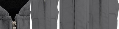 - Two-way, concealed Nomex® taped brass break-away zipper