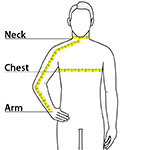 | Chest | 32-36 | 36-39 | 39-42 | 42-45 | 45-49 | 49-53 | 53-57 |