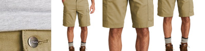 Built for the person who carries a lot of stuff our IL50*-strength Cargo Short is built with snap cargo pockets to pack what you need to get work done.8-ounce 65/35 poly/cotton twill with Touchtex technology for superior color retention soil release and wickability Heavy-duty brass ratcheting zipper with button closure Two front pockets 10-inch inseam Two back patch pockets with spade pocket flaps and snap closure Two patch leg pockets with inverted center pleats one-piece pocket flaps with mitered corners and two snap closures