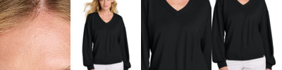 Remember that long weekend feeling any day of the week in this versatile, comfortable V-neck that can be worn at work or while hanging out. 7.2-ounce, 73/22/5 modal/polyester/elastane Easy wash and wear Crossover V-neck Drop shoulders Full sleeves with self-turned cuffs TM logo woven label at left hem