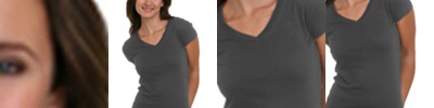 V-neck silhouette is a flattering choice in soft combed cotton.