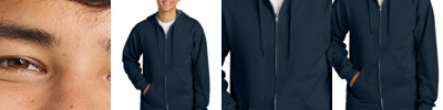 8.4-ounce, 80/20 ring spun cotton/polyester 75/25 ring spun cotton/polyester (Ring Spun Sport Grey) 100% ring spun cotton face 1x1 rib with spandex varsity collar, cuffs and bottom band Dyed-to-match reverse coil locking zipper Classic fit, tubular body Recycled, high-performing black tear-away label