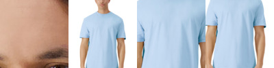 4.6-ounce, 60/40 ring spun cotton/polyester CVC blend Subtle heather texture on all colors except Pitch Black and White Recycled, high-performing black tear-away label Softstyle's high stitch density fabric offers a smoother printing surface Narrow width, rib collar Taped neck and shoulders Modern classic fit, seamless body Double-needle hem