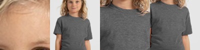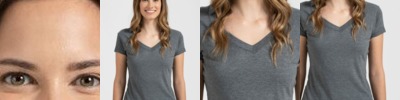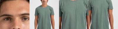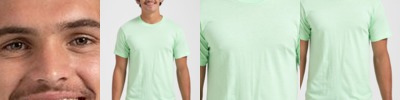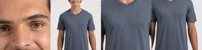 4.45-ounce, 100% US cotton 90/10 cotton/polyester (Sport Grey) Non-dyed fabric with visible specks of fibers and cotton seeds (Natural) Narrow width, rib collar Taped neck and shoulders Modern classic fit, seamless body Recycled, high-performing black tear-away label