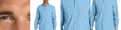 Outwork everything under the sun. Engineered with an emphasis on sweat-fighting and sun protection, this work shirt is ideal for the warmest days. 2.9-ounce, 71/29 polyester/nylon chambray Sun Defender UPF 50+ UV protection Carhartt Force ® works harder to fight sweat, dry fast and stop odor FastDry ® technology wicks away sweat to keep you cool Rugged Flex ® technology for ease of movement Button-down collar Mesh-lined vent at center back for flow-through ventilation Two chest pockets with a pen stall Carhartt label sewn on left chest pocket Relaxed fit
