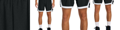 A short with moisture-wicking and odor-resistant technology is a slam dunk for your team. 4.7-ounce, 100% polyester closed-hole mesh with PosiCharge technology Moisture-wicking Odor-fighting Elastic waistband 7-inch inseam Continuous loop drawcord Contrast side and hem stripe Side vents Tear-away label