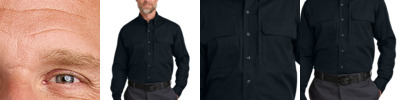 Designed to meet the needs of event staff, security, landscapers and more, this tactical shirt is packed with pockets and innovative features to keep you looking professional throughout the workday. 5-ounce, 60/40 polyester/cotton ripstop Stain release Reinforced triple-needle stitching Hidden button-down collar Mic clips at shoulders Double pass-through chest pockets with hook and loop closures and pen slot Dyed-to-match buttons Underarm gussets Pen pocket on left sleeve Cape back with mesh ventilation Rental-friendly