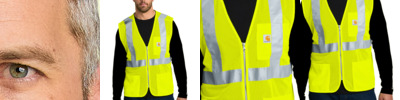 Built to last, this lighter weight mesh vest works well in warm weather or it can be a high visibility layer over your favorite Carhartt sweatshirt. 3.4-ounce, 100% polyester mesh Meets ANSI 107 Class 2, Type R visibility standards Triple-stitched main seams Zippered front closure Utility band at right shoulder Left chest pocket with pen stall Two tricot fabric lower-front pockets with secure hook and loop closures Carhartt label sewn on top left pocket Reflective material maintains performance through 50 home launderings This garment must be fully zipped to be in compliance with ANSI/ISEA 107 standards