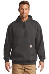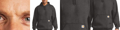 This hoodie has the soft feel of a favorite sweatshirt with the warmth and durability that rivals a jacket. 10.5-ounce, 55/45 cotton/poly blend Attached three-piece hood with drawcord closure Full-length brass front zipper Two front hand warmer pockets Stretchable, spandex-reinforced, rib knit cuffs and waistband Carhartt label sewn on left hand warmer pocket Relaxed fit