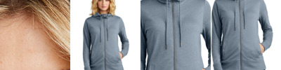 Cozy but refined, this OGIO tunic has a longer length-making it perfect as a short dress- but is elevated enough for the office or travel. 7.1-ounce, 57/38/5 modal/poly/spandex French terry OGIO heat transfer label for tag-free comfort 3-panel hood Stretch drawcords with dyed-to-match plastic tips Drop shoulder Princess seams Front side-entry pocket Rib knit cuffs Iridescent heat transfer O on left sleeve Curved hem