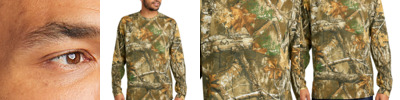 A must-have for anyone who loves the outdoor lifestyle. It's perfect as a base layer or stand-alone tee, whether for everyday work and play or if you're headed out for adventure. 5.5-ounce, 100% ring spun combed cotton Tag-free label Realtree EDGE ® print Edge stitching around neck helps stabilize rib for better wash and wear Shoulder-to-shoulder neck taping Left chest pocket Side seams Exterior woven Russell Outdoors tab at hem The camo print is pigment-dyed. Special consideration must be taken when printing white ink on pigment-dyed cotton.
