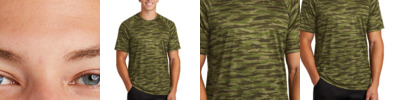 With its all-over camo print, this fan-approved moisture-wicking tee delivers UV protection and is as at home on the track as it is in the gym. 3.8-ounce, 100% polyester UPF rating of 30 Tear-away removable label Raglan sleeves