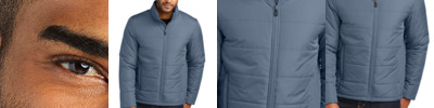 With wider baffles for a modern look, this water-resistant puffer looks cool while keeping you warm. 100% polyester shell and lining Molded center front zipper Interior storm flap Zippered hand pockets Insulation method: 4.4-oz. polyfill Water protection method: water-repellent finish Port Pocket for decoration access