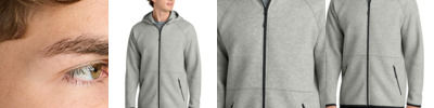 Constructed with a midweight spacer knit fabrication, this modern hoodie can be worn after training, while traveling or as a corporate layer. 8.8-ounce, 56/44 cotton/polyester spacer knit 3-panel hood Reverse coil center front zipper Reverse coil zippered pockets Corded black zipper pull with reflective detail Contrast stretch binding on sleeves and hem