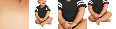Now the youngest fan is ready to cheer on the team. Designed with contrasting sleeve stripes and coverstitched yoke, this bodysuit has a sporty look and exceptional comfort. 4.5-ounce, 100% combed ring spun cotton fine jersey 60/40 combed ring spun cotton/poly vintage heathered fine jersey (vintage colors) Side seamed Ribbed collar EasyTear label for additional comfort and ability to brand as your own Back neck and shoulder-to-shoulder taping Coverstitched front and back yoke Contrasting stripes on sleeves Double-needle sleeves Double-needle ribbed binding on leg openings Innovative three-snap closure