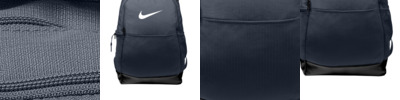 This versatile backpack is ideal for packing everything you need to get you through a busy training day or when you're away from your locker, gym or home. 100% recycled polyester dobby Back panel and shoulder straps are padded for comfortable carrying Multiple pockets provide organized small-item storage Zippered main compartment offers spacious and secure storage Plush-lined, zippered pocket for headphones or electronics Padded sleeve safely stores a laptop A water-resistant coating on bottom panel helps keep gear dry Contrast Swoosh design trademark Laptop sleeve fits most 15' laptops Dimensions: 18'h x 12'w x 7'd; Approx. 1,465 cubic inches Note: Bags not intended for use by children 12 and under.