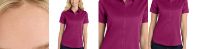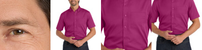 The ultimate in professional performance, this wrinkle-resistant shirt also releases stains. The soft, smooth fabric gives you a polished look that's comfortable enough for year-round wear. 4.3-ounce, 55/45 cotton/poly twill Stain release Wrinkle-resistant Open collar Dyed-to-match buttons Back yoke