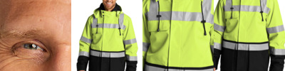 This warm performance soft shell combines superior weather protection with the highest class of visibility. 100% polyester woven shell with durable water-repellent (DWR) finish bonded to a water-resistant, breathable film insert and a 100% polyester microfleece lining Black bottom front and lower sleeves for a cleaner appearance Fabric waterproof rating: 5000MM Fabric breathability rating: 5000G/M2 Full-length interior storm flap with chin guard Durable, reflective 2-inch tape meets ANSI 107 requirements and provides 360-degree visibility on body and sleeves; tape is bonded to fabric Molded right chest, hand and center front zippers with rubber pulls Mic clips at shoulders Elastic cuffs with adjustable hook and loop closures and rubber tabs Adjustable drawcord hem This garment must be fully zipped to be in compliance with ANSI 107 standards