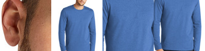 4.3-ounce, 60/40 combed ring spun cotton/poly, 32 singles CVC blend 1x1 rib knit neck Shoulder to shoulder taping Tear-away label Side seamed Fitted