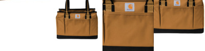 This rugged tote is versatile enough to lug around all your work gear, keep near your work bench or toss in the truck and haul everything you need-regardless of light rain. Made from durable heavyweight canvas, this ultra-tough tote never stops performing. A sturdy base helps ensure it can stand on its own. 600D rugged polyester Rain Defender ® durable water repellent (DWR) Large opening into main compartment Dual webbing haul handles with comfort grip 11 exterior pockets, 6 interior pockets and 7 interior loops Sturdy base to help tote remain upright Carhartt label sewn on front Capacity: 14L Dimensions: 9.5'h x 13.5'w x 8'l; Approx. 854 cubic inches Note: Bags not intended for use by children 12 and under.
