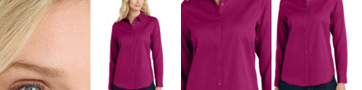 The ultimate in professional performance, this wrinkle-resistant shirt also releases stains. The soft, smooth fabric gives you a polished look that's comfortable enough for year-round wear. 4.3-ounce, 55/45 cotton/poly twill Stain release Wrinkle-resistant Open collar Dyed-to-match buttons Rounded adjustable cuffs Back yoke