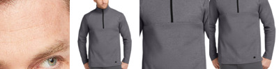 Transition easily between a corporate look and afterhours style in this double-knit piece that has stretch and OGIO edge. 11.4-ounce, 52/45/3 cotton/poly/spandex fleece OGIO heat transfer label for tag-free comfort Black grosgrain detail at zipper Metal molded zipper with debossed O on zipper pull Seaming details Matte black debossed O metal badge on front left hem