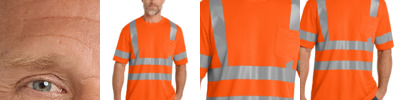 This breathable, moisture-wicking mesh tee delivers high visibility and on-the-job comfort. 4.1-ounce, 100% polyester birdseye mesh UPF rating of 30 Durable, reflective 2-inch tape meets ANSI 107 requirements and provides 360-degree visibility on body 1x1 rib knit neck Back neck tape Left chest pocket 1x1 rib knit cuffs