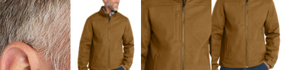 By combining popular soft shell outerwear technology with duck cloth, and an ultra-warm fleece interior,this jacket is a workwear must-have that helps you get the job done in any kind of weather. 100% cotton canvas shell with a DWR finish bonded to a water-resistant film insert and 100% polyester microfleece lining Metal front zipper Zippered chest pocket Zippered hand pockets Three interior pockets Adjustable metal snaps at cuffs