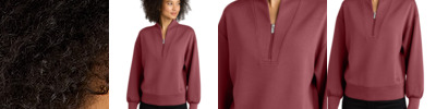 A stylish feminine fit and flatlock stitching details make this sweatshirt stand out. A rib knit cadet collar and 1/4-zip add to its appeal. Colorfast with minimal shrinkage, this casual essential is made to last.