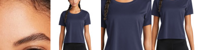 With an on-trend cropped fit and all-over open-mesh fabric, this moisture-wicking draft crop tee has PosiCharge technology to lock in color. 3.7-ounce, 100% polyester tricot mesh with PosiCharge technology Boxier fit Removable tag for comfort and relabeling Drop shoulder