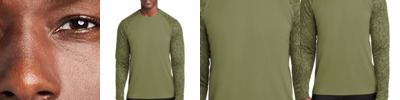 A subtle digi camo pattern gives this moisture-wicking, breathable performance tee a unique edge. 3.8-ounce, 100% polyester interlock with sublimated digi camo print Removable tag for comfort and relabeling Digi camo print on sleeves